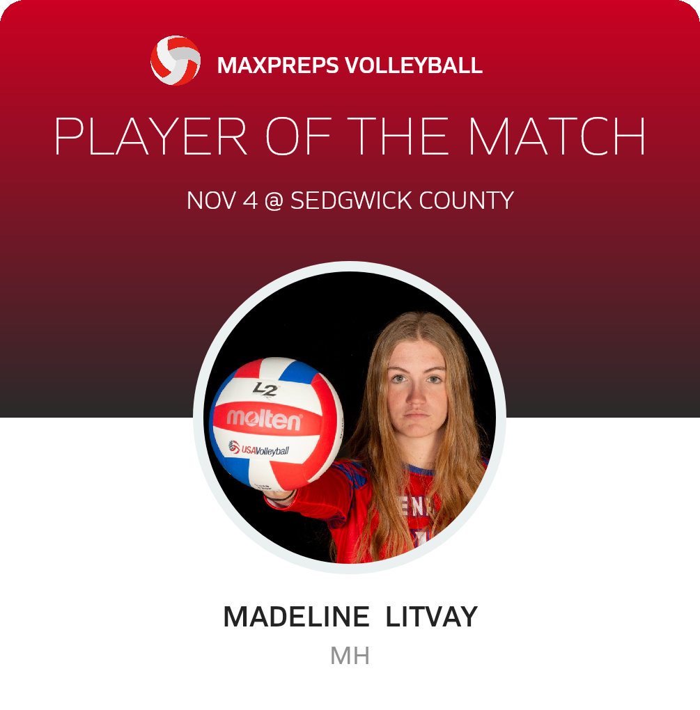 Congratulations to #12 Madeline Litvay for being selected the Buena Vista Volleyball Player of the Match.