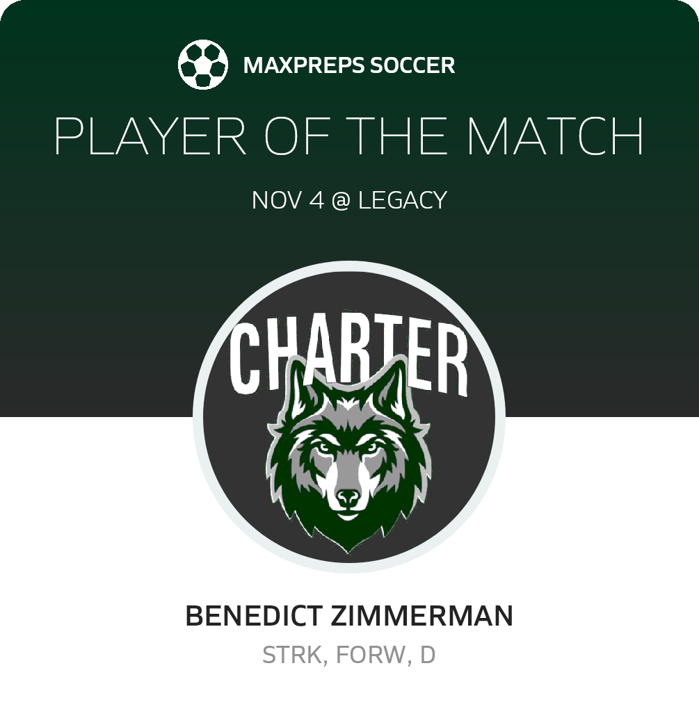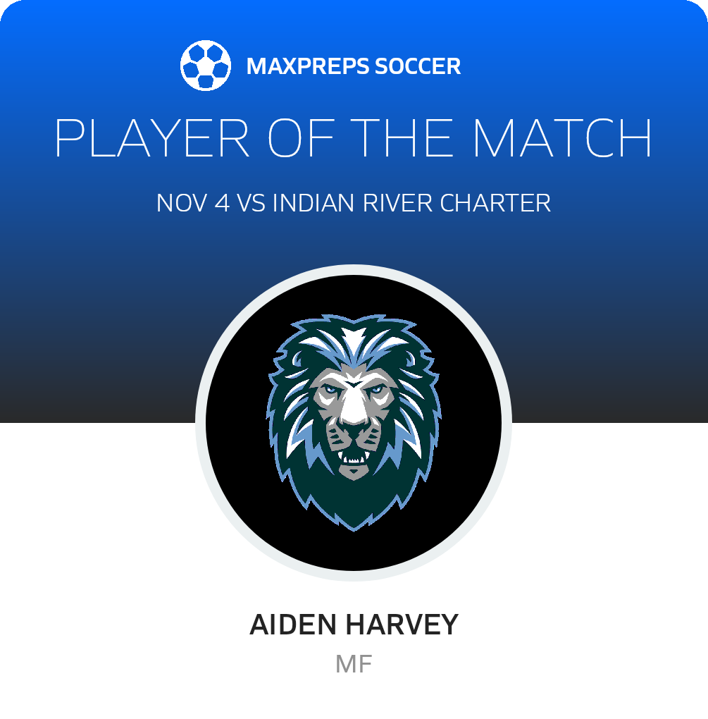 Congratulations to Benedict Zimmerman for being selected the Indian River Charter Soccer Player of the Match.