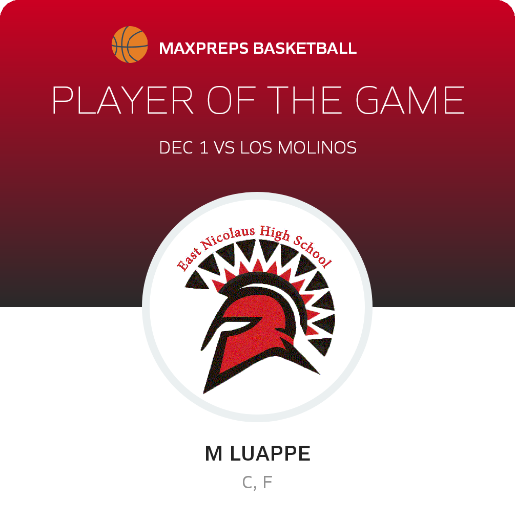 In their next game, the Spartans meet the Biggs Wolverines (Biggs, CA) in a non-league match, on Thursday, December 1. East Nicolaus will attempt to better on its 3-0 season record. The Wolverines enter the match with a 0-2 record after their 62-19 non-league loss to Faith Christian (Yuba City, CA).