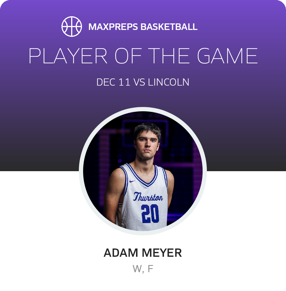 Congratulations to #20 Adam Meyer for being selected the North Thurston Basketball Player of the Game.