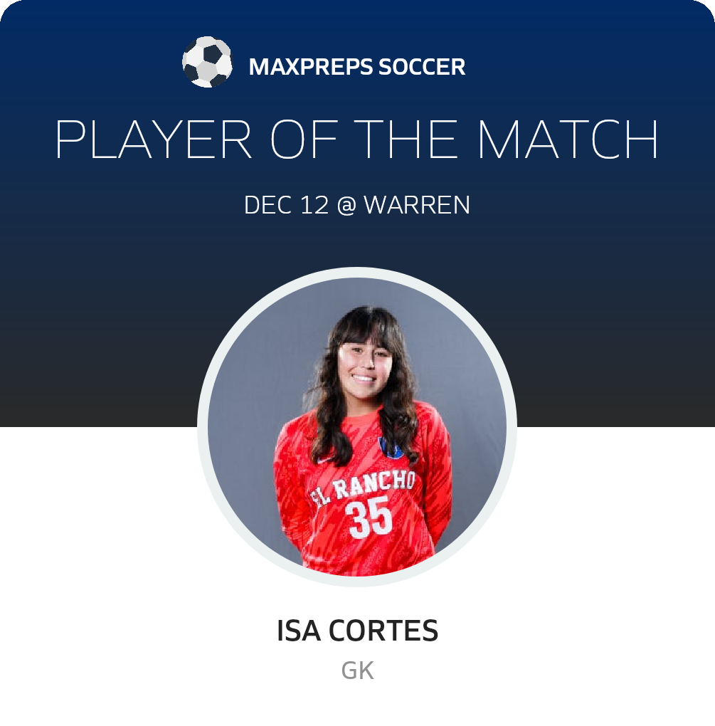 Congratulations to #35 Isa Cortes for being selected the El Rancho Girls Soccer Player of the Match.