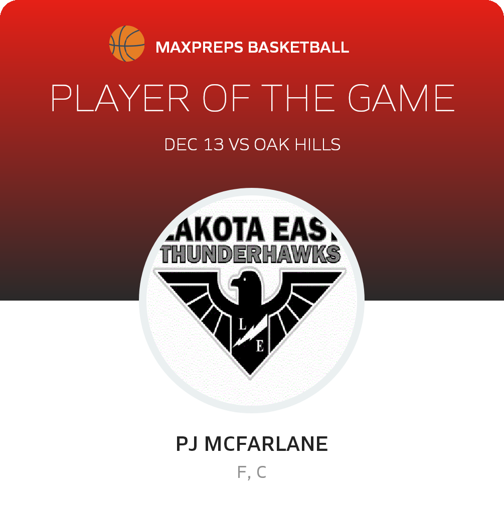 Congratulations to #14 PJ McFarlane for being selected the Lakota East Freshman Basketball Player of the Game.