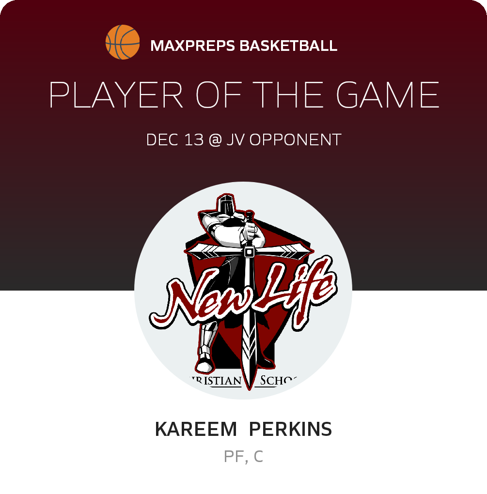 Congratulations to #1 Kareem Perkins for being selected the New Life Christian JV Basketball Player of the Game.