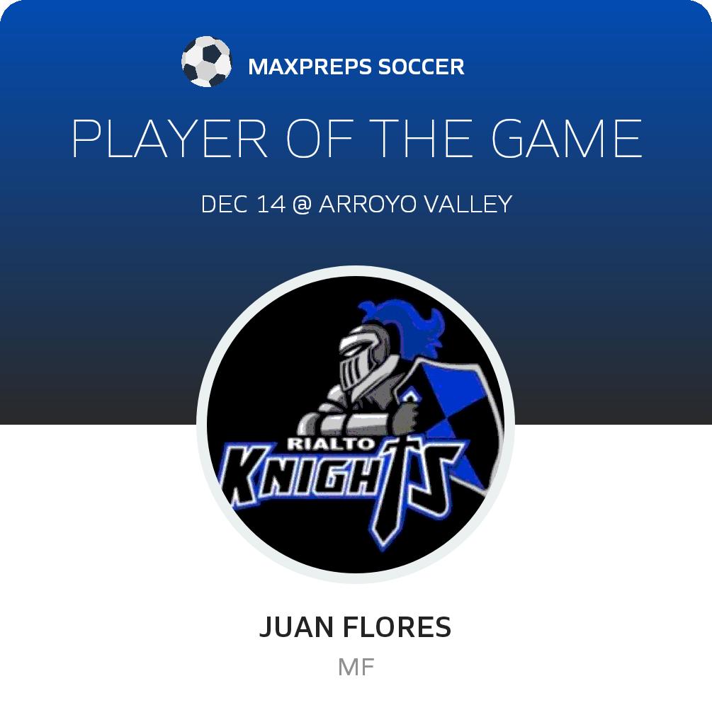In Wednesday's league game, the Rialto Knights (Rialto, CA) soccer squad the host Arroyo Valley Hawks (San Bernardino, CA), by a final score of 2-0.