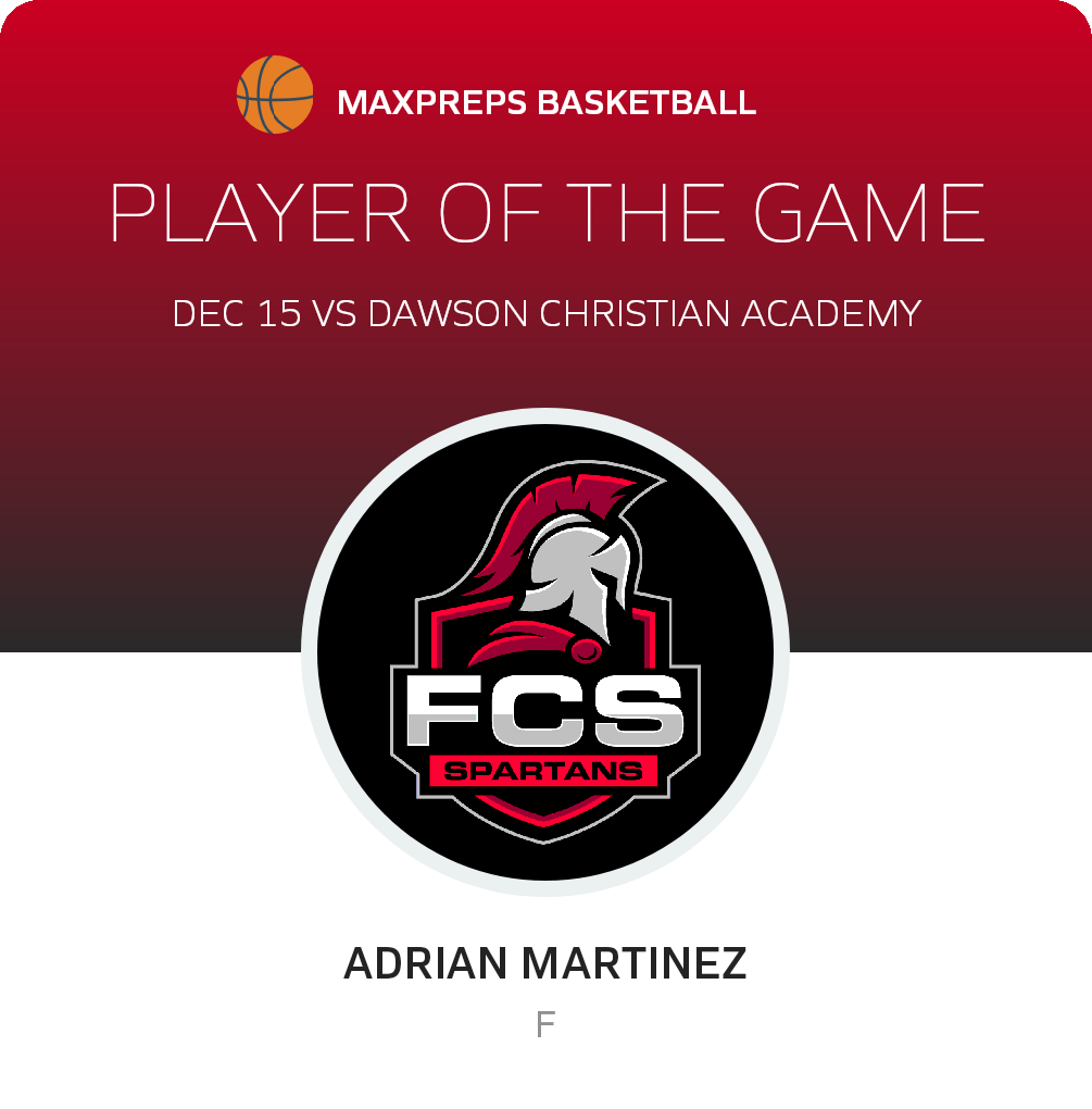 Congratulations to #14 Adrian Martinez for being selected the Friendship Christian Basketball Player of the Game.