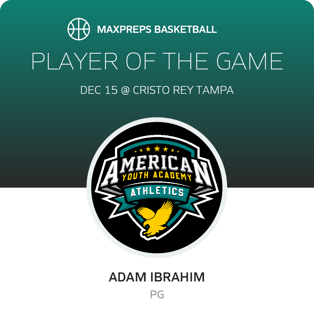 Congratulations to #13 Adam Ibrahim for being selected the American Youth Academy Basketball Player of the Game.