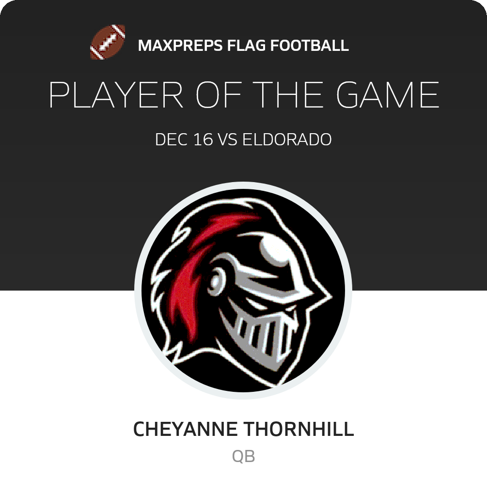 Congratulations to #16 Cheyanne Thornhill for being selected the Mater Academy East Las Vegas Girls Flag Football Player of the Game.