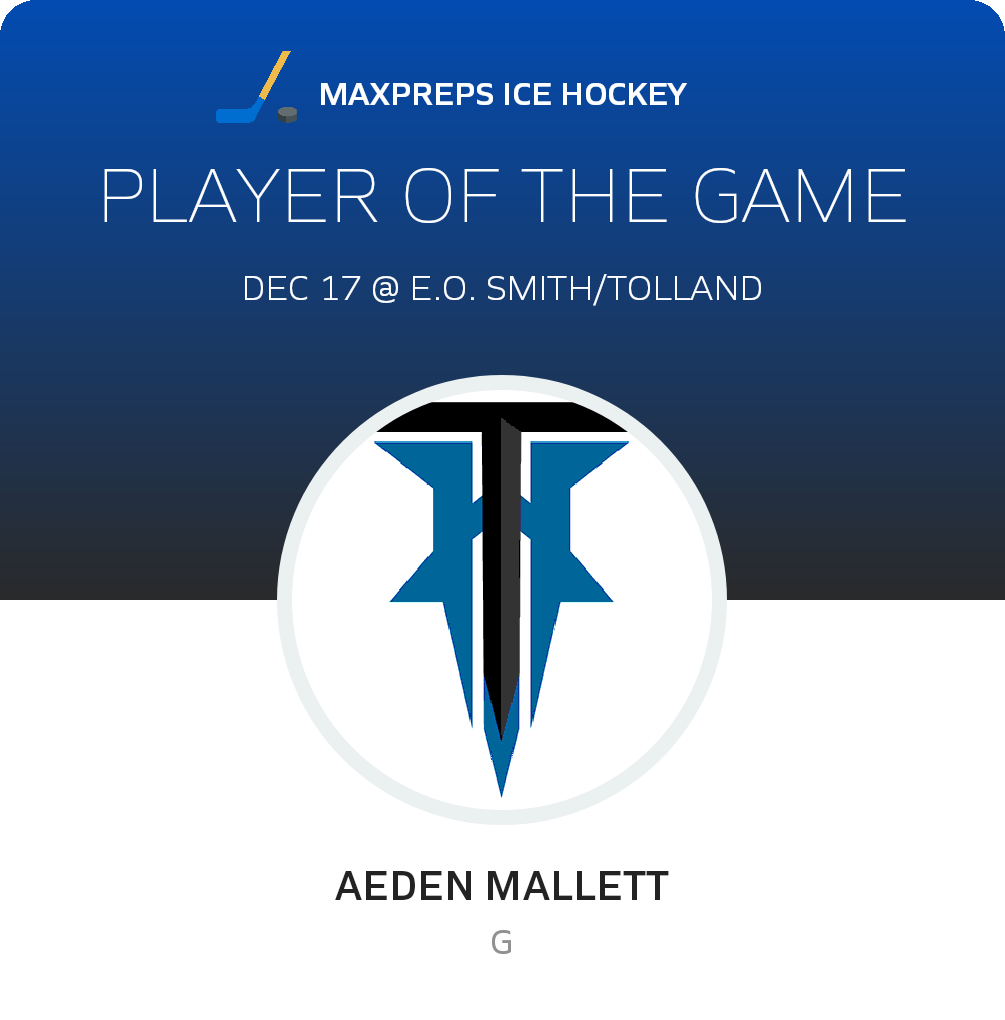 Congratulations to #31 Aeden Mallett for being selected the Hall Ice Hockey Player of the Game.