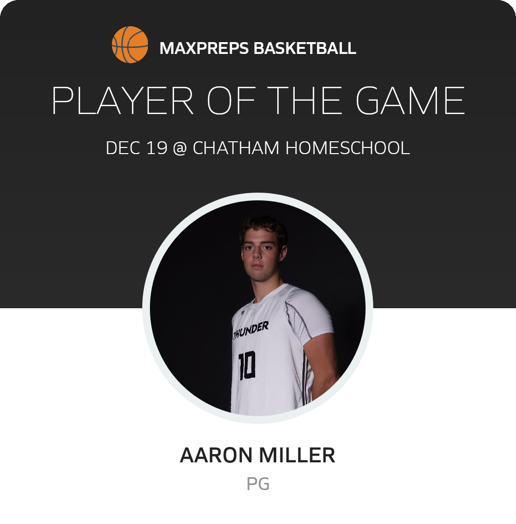 With the victory, Chatham HomeSchool advances its record to 9-7 on the year. The Thunder travel to Durham Flight HomeSchool (Durham, NC) to meet the Flight in a North Carolina Home Education - East battle on Saturday, December 21. The Flight enter the battle with a record of 4-1.