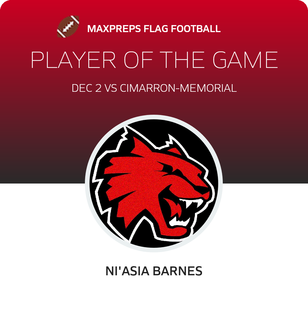 Congratulations to #18 Ni'Asia Barnes for being selected the Las Vegas Girls Flag Football Player of the Game.