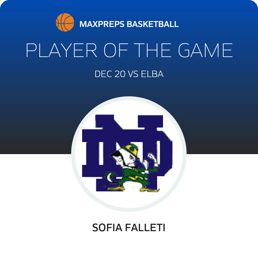 Congratulations to #44 Sofia Falleti for being selected the Notre Dame Girls Basketball Player of the Game.