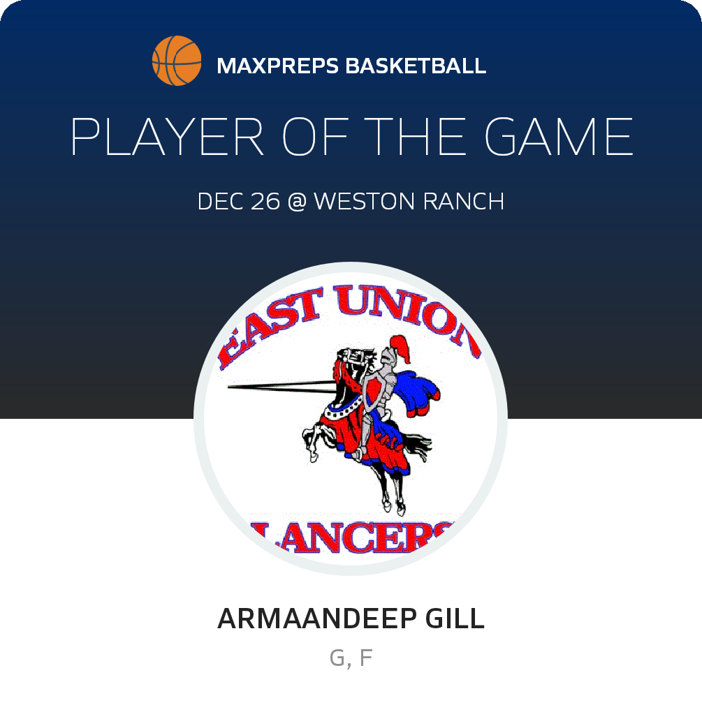 Congratulations to #23 Armaandeep Gill for being selected the East Union JV Basketball Player of the Game.