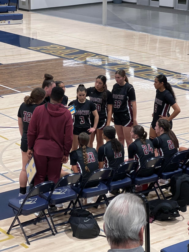 Woodcreek Timberwolves (Roseville, CA) backers were in high spirits Tuesday as they witnessed their basketball squad bounce the host Del Campo Cougars (Fair Oaks, CA), 71-18 in a non-league bout.
