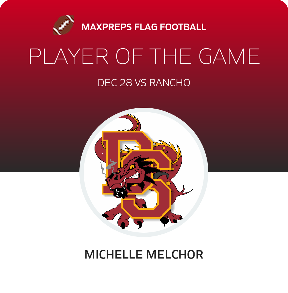 Congratulations to #20 Michelle Melchor for being selected the Del Sol Girls Flag Football Player of the Game.