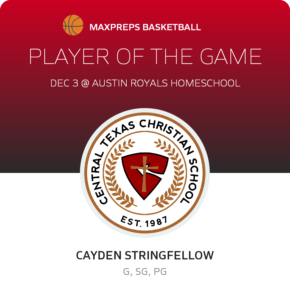Congratulations to #4 Cayden Stringfellow for being selected the Central Texas Christian Basketball Player of the Game.