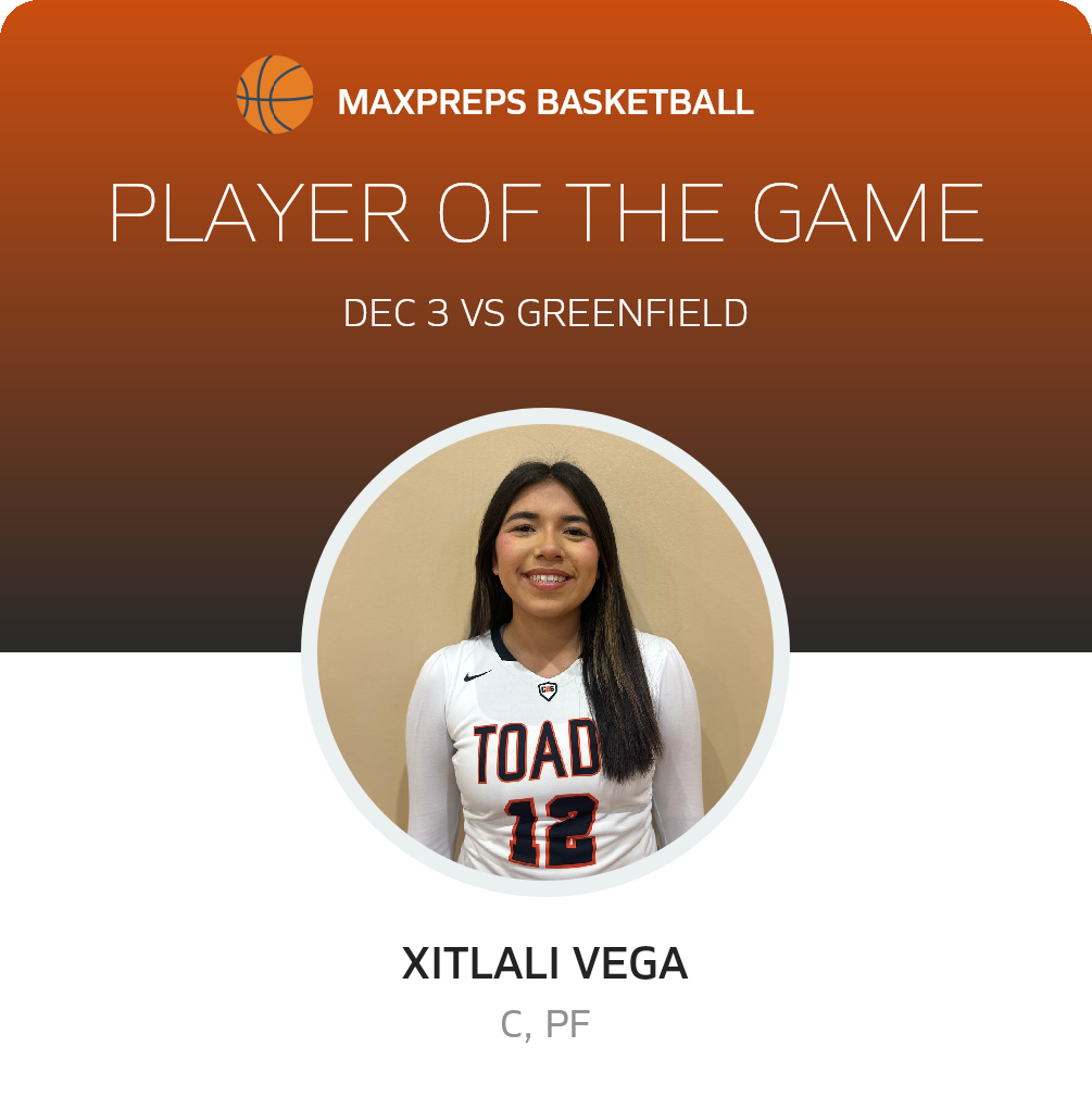 Congratulations to #12 Xitlali Vega for being selected the Coalinga Girls JV Basketball Player of the Game.