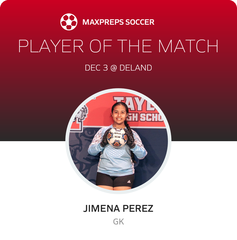 Congratulations to #1 Jimena Perez for being selected the Taylor Girls Soccer Player of the Match.