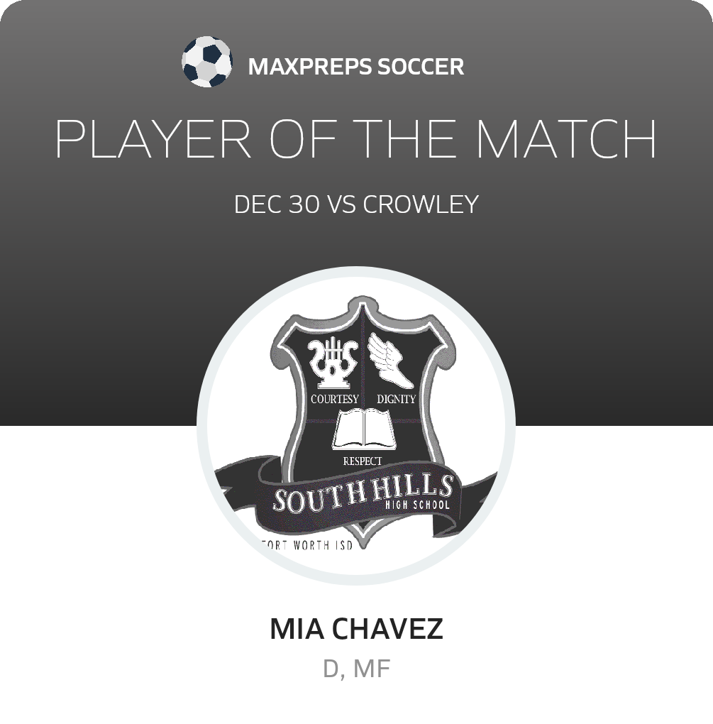 Congratulations to #11 Mia Chavez for being selected the South Hills Girls JV Soccer Player of the Match.