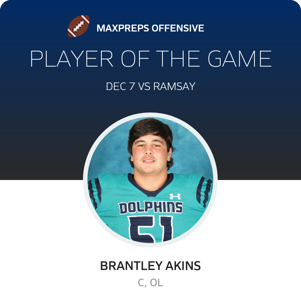 Congratulations to #2 Ronnie Royal (overall), #51 Brantley Akins (offensive), #7 Jamichael Garrett (defensive) and #5 Mac Anderson (special teams) for being selected the Gulf Shores Football Players of the Game.