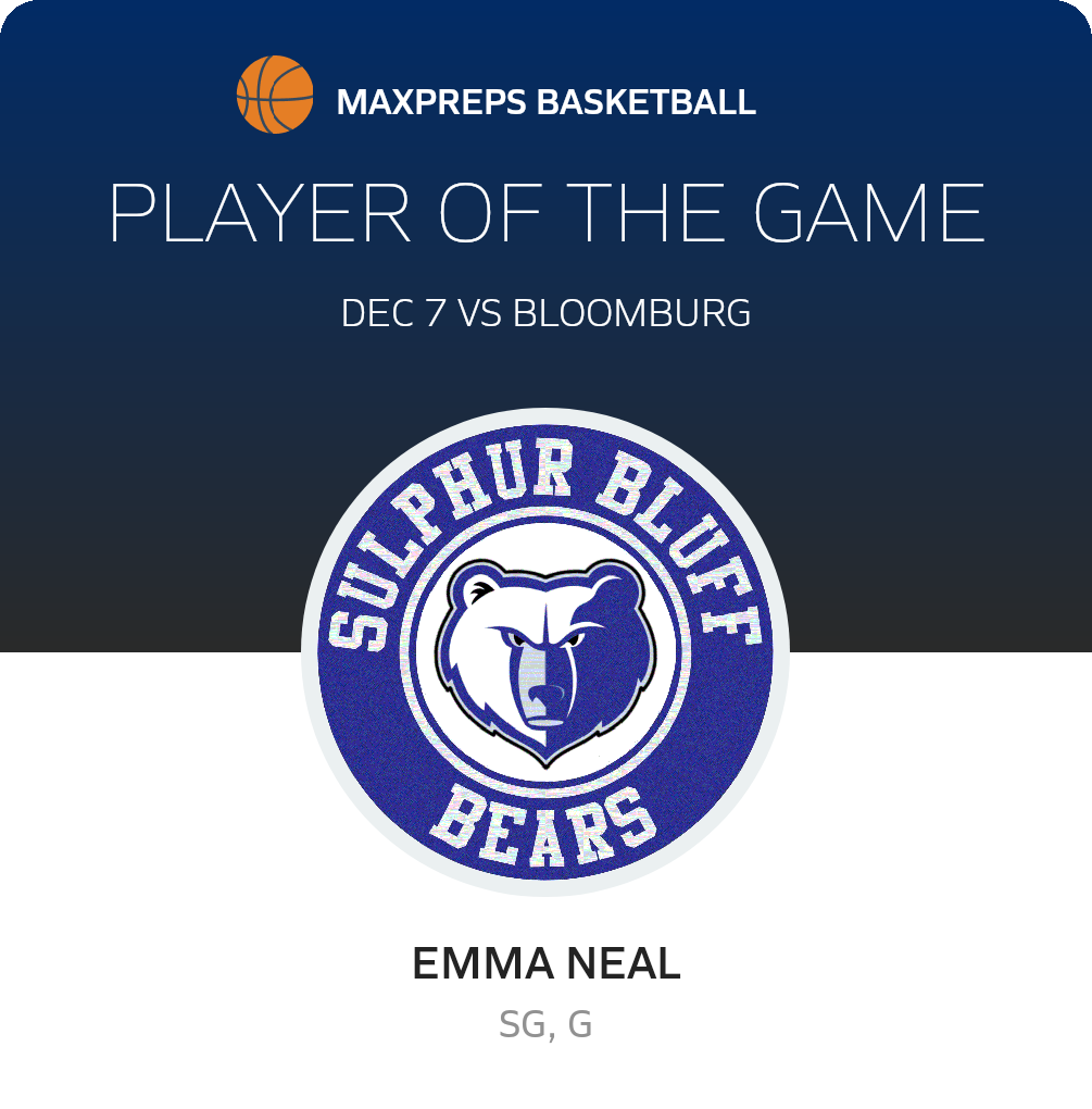 The Bears now sport a 4-6 record. They put it on the line next when they host Ector for a non-league contest on Thursday, December 7. Sulphur Bluff will battle a Eagles team coming off a 57-14 league loss to Dodd City (Dodd City, TX). The Eagles record now stands at 1-9.