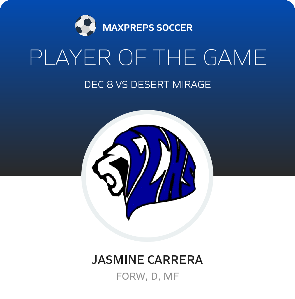 Congratulations to #38 Jasmine Carrera for being selected the Cathedral City Girls Soccer Player of the Match.