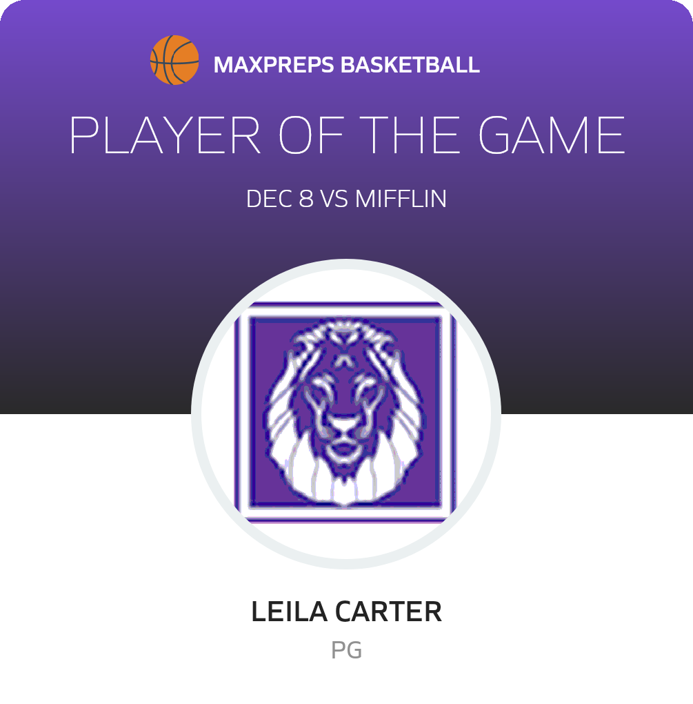 Congratulations to #20 Leila Carter for being selected the Columbus International Girls Basketball Player of the Game.