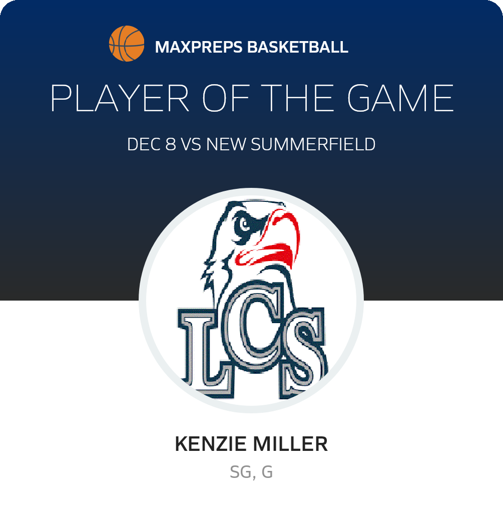 Congratulations to #2 Kenzie Miller for being selected the Longview Christian Girls Basketball Player of the Game.