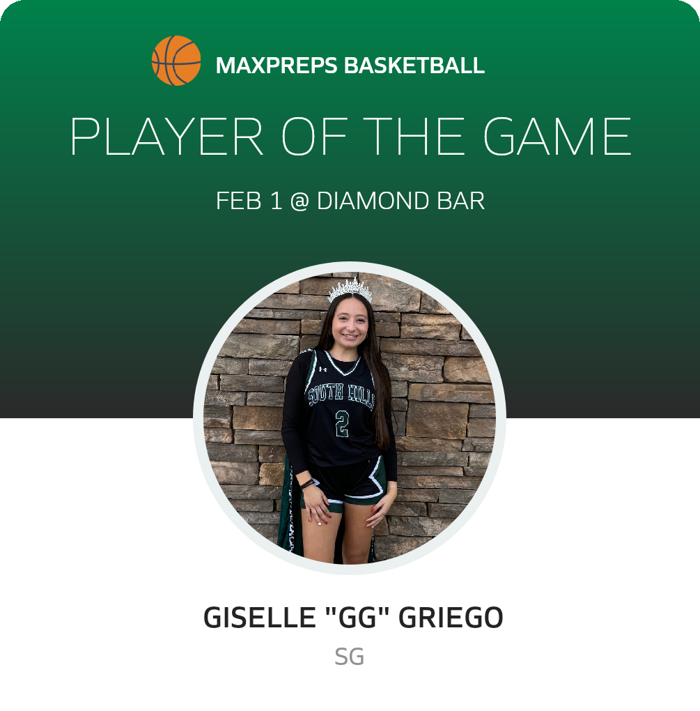 Congratulations to #2 Giselle Griego for being selected the South Hills Girls Basketball Player of the Game.