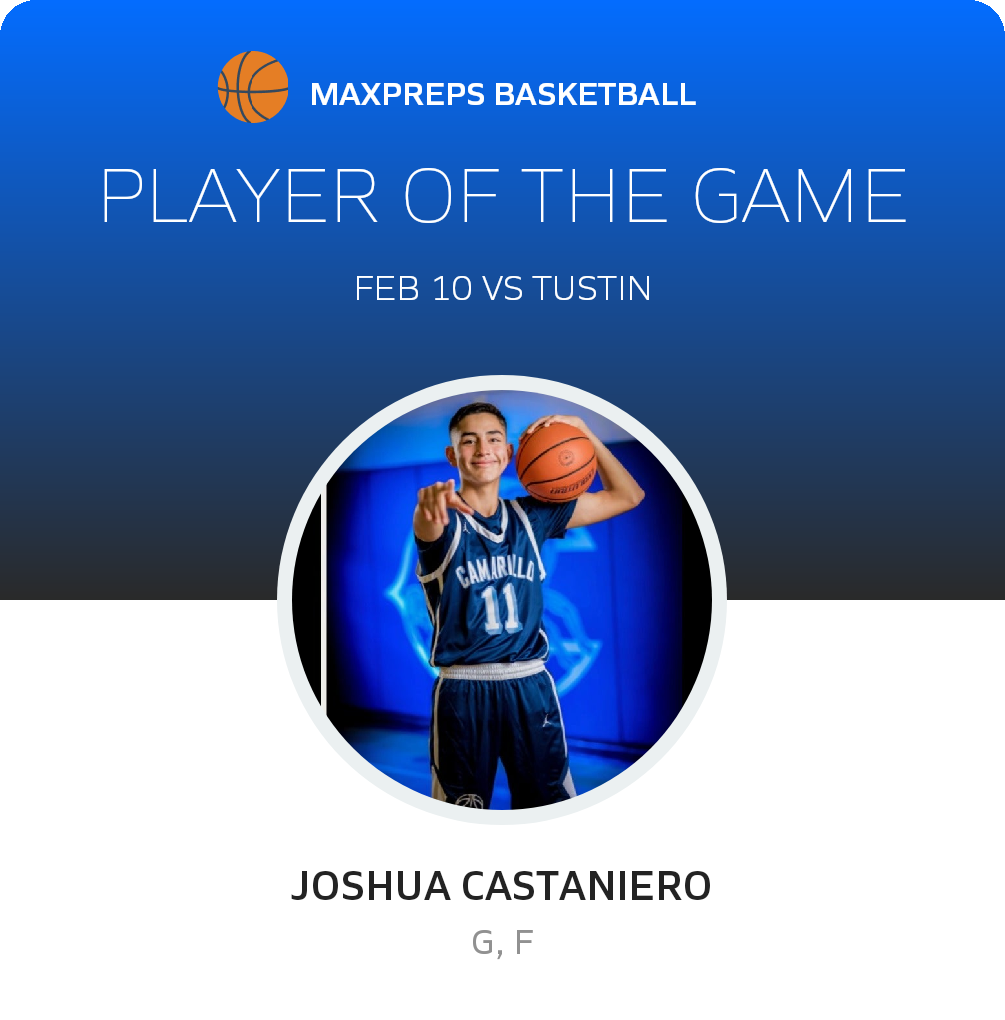 Congratulations to #11 Joshua Castaniero for being selected the Camarillo Basketball Player of the Game.