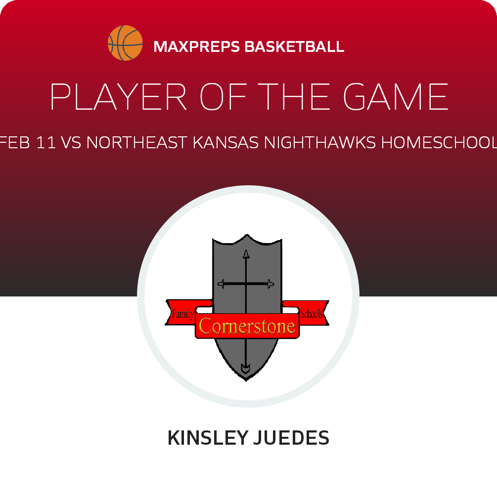 In their next game, the Saints meet the Heritage Christian Eagles (Topeka, KS) in a non-league match, on Saturday, February 11. Cornerstone Family will attempt to move on its 6-9 season record. The Eagles enter the match with a 4-1 record after their 22-17 non-league win over Northeast Kansas Nighthawks HomeSchool (Topeka, KS).