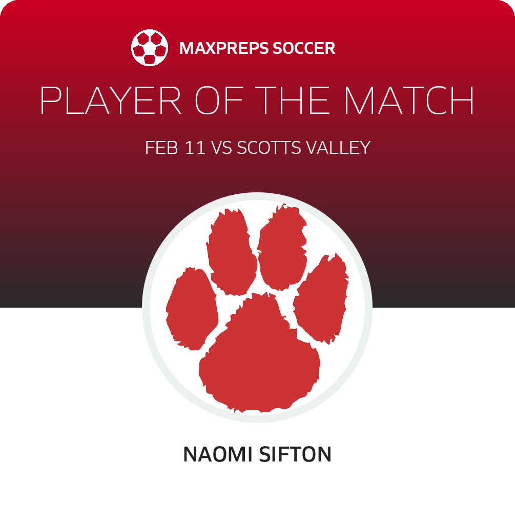 Congratulations to #4 Naomi Sifton for being selected the San Lorenzo Valley Girls Soccer Player of the Match.