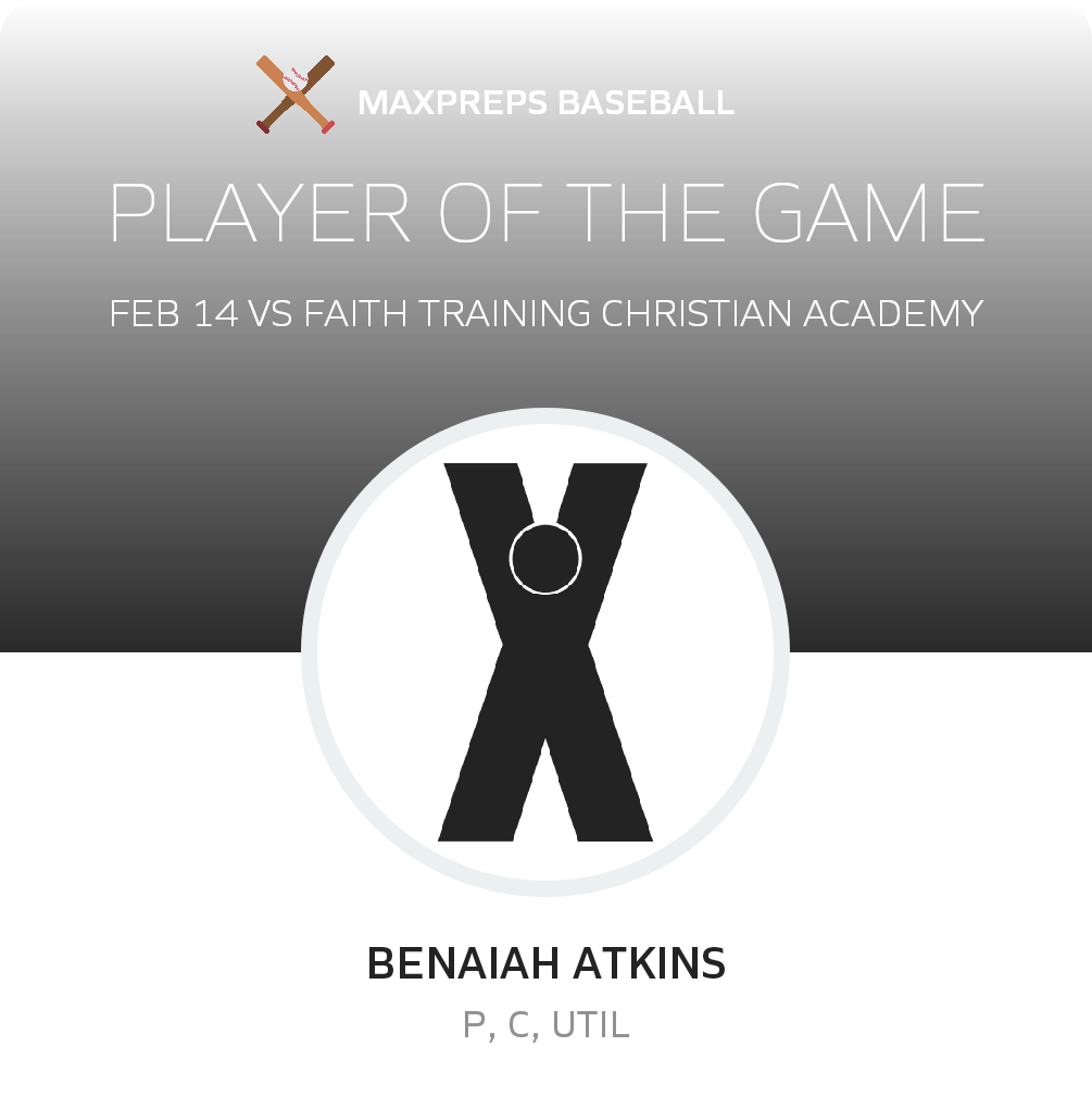 Congratulations to #8 Benaiah Atkins for being selected the Christian HomeSchool Sports Association of Acadiana Baseball Player of the Game.