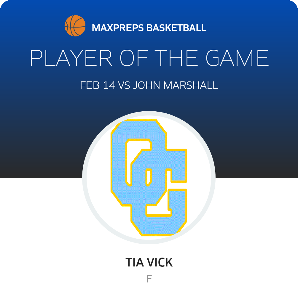 Congratulations to #13 Tia Vick for being selected the Oak Glen Girls Basketball Player of the Game.