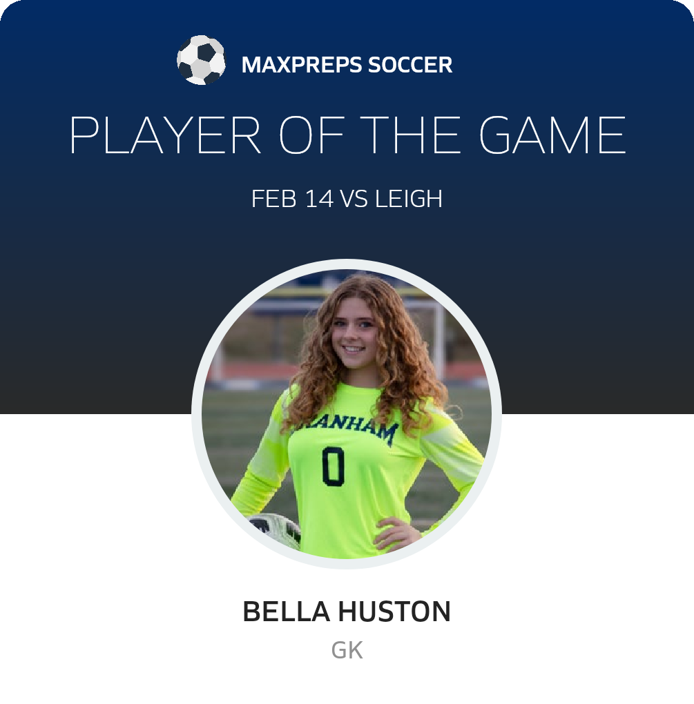 Congratulations to #0 Bella Huston for being selected the Branham Girls JV Soccer Player of the Match.