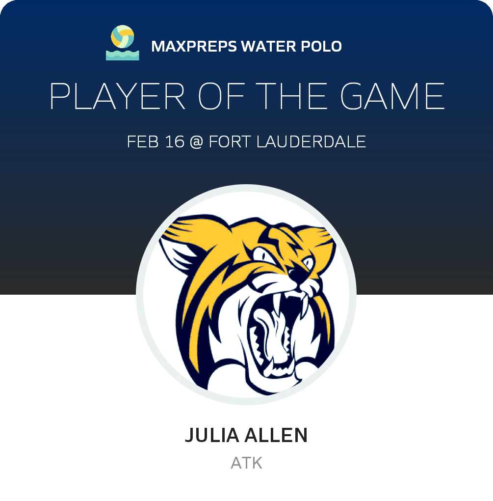Congratulations to #6 Julia Allen for being selected the Boca Raton Girls Water Polo Player of the Game.