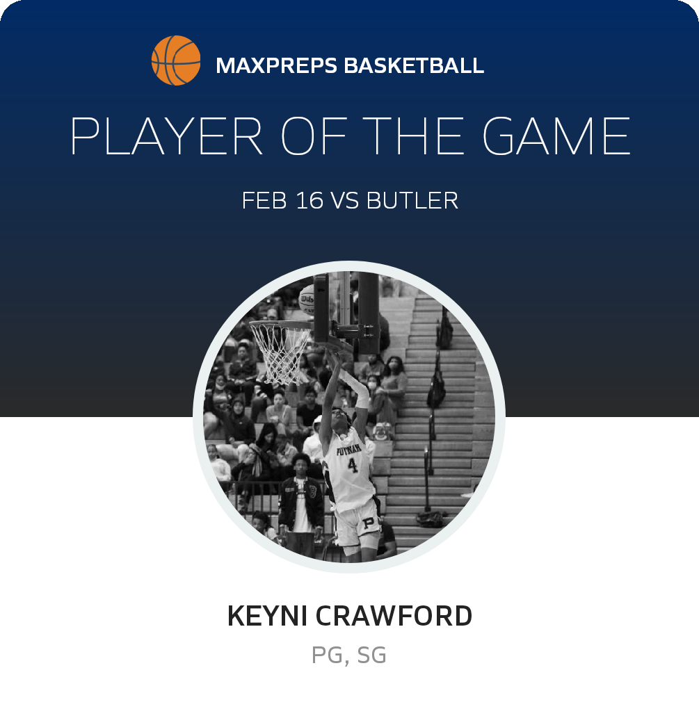 Congratulations to #4 Keyni Crawford for being selected the Putnam County Basketball Player of the Game.
