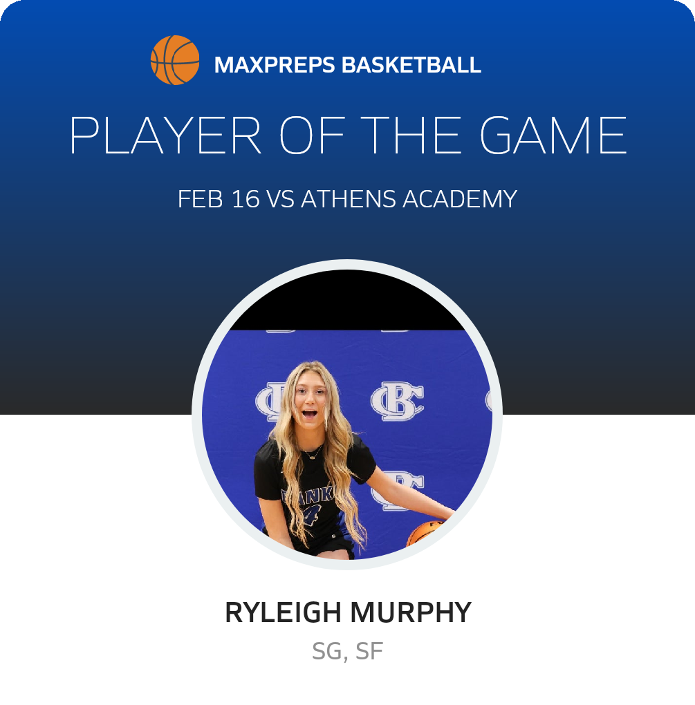 Congratulations to #11 Ryleigh Murphy for being selected the Banks County Girls Basketball Player of the Game.