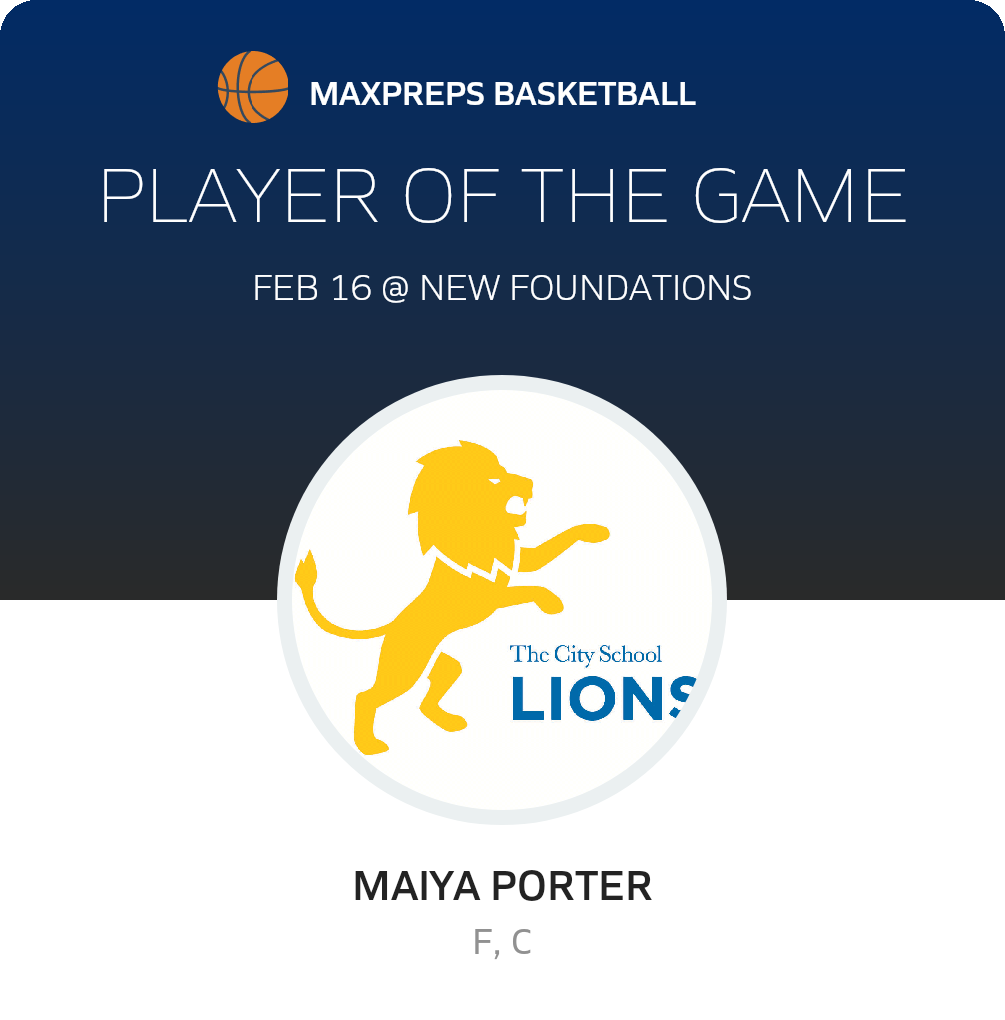 Congratulations to #25 Maiya Porter for being selected the The City School Girls Basketball Player of the Game.
