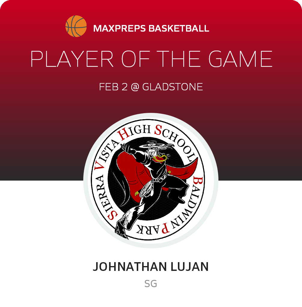 Congratulations to #20 Johnathan Lujan for being selected the Sierra Vista Basketball Player of the Game.