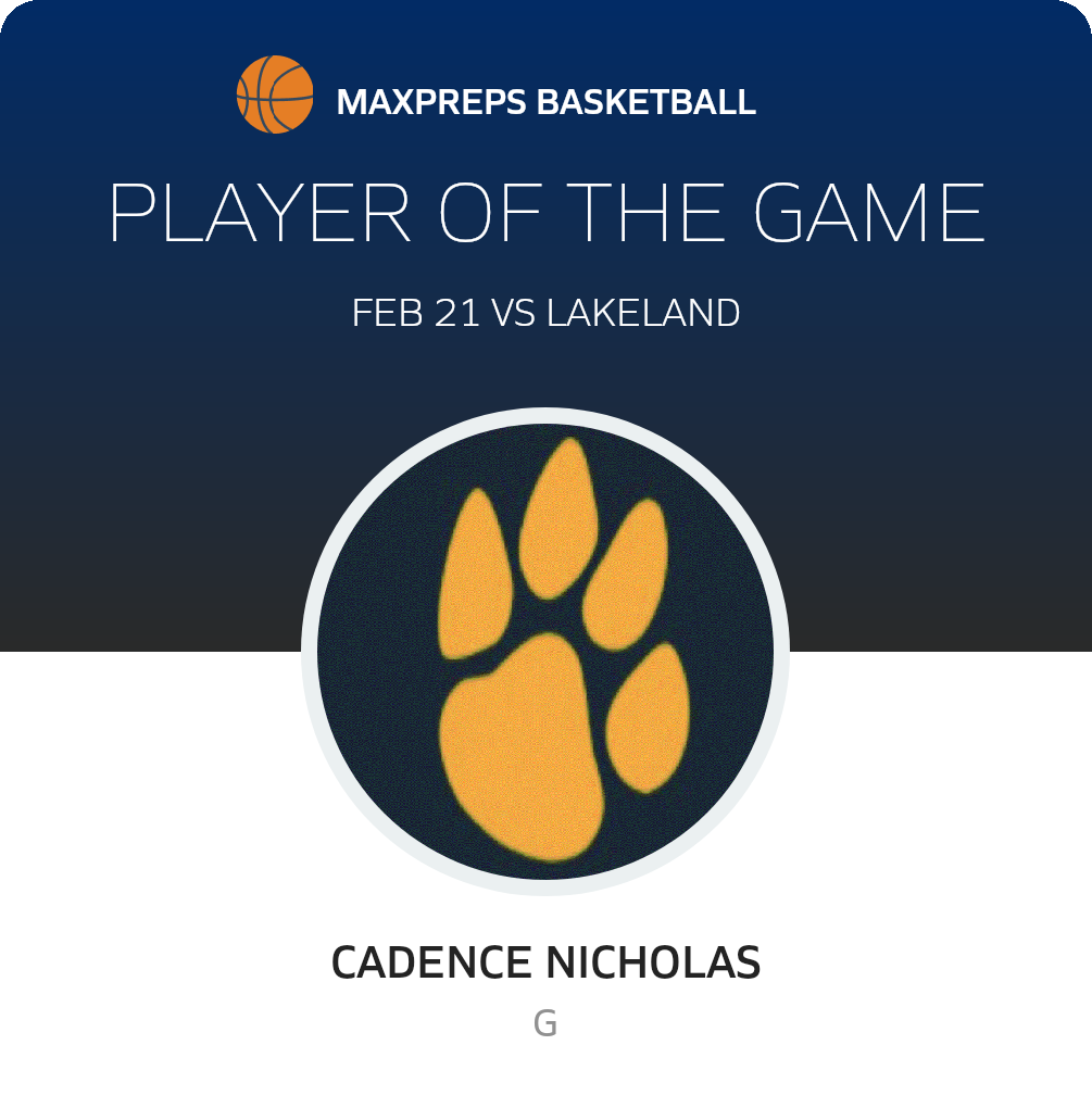 Congratulations to #12 Cadence Nicholas for being selected the Walter Panas Girls Basketball Player of the Game.