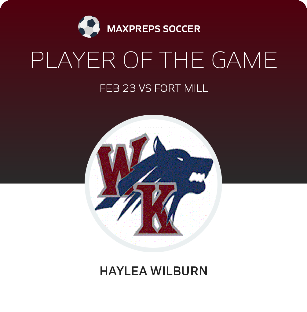 Congratulations to #0 Haylea Wilburn for being selected the White Knoll Girls Soccer Player of the Match.