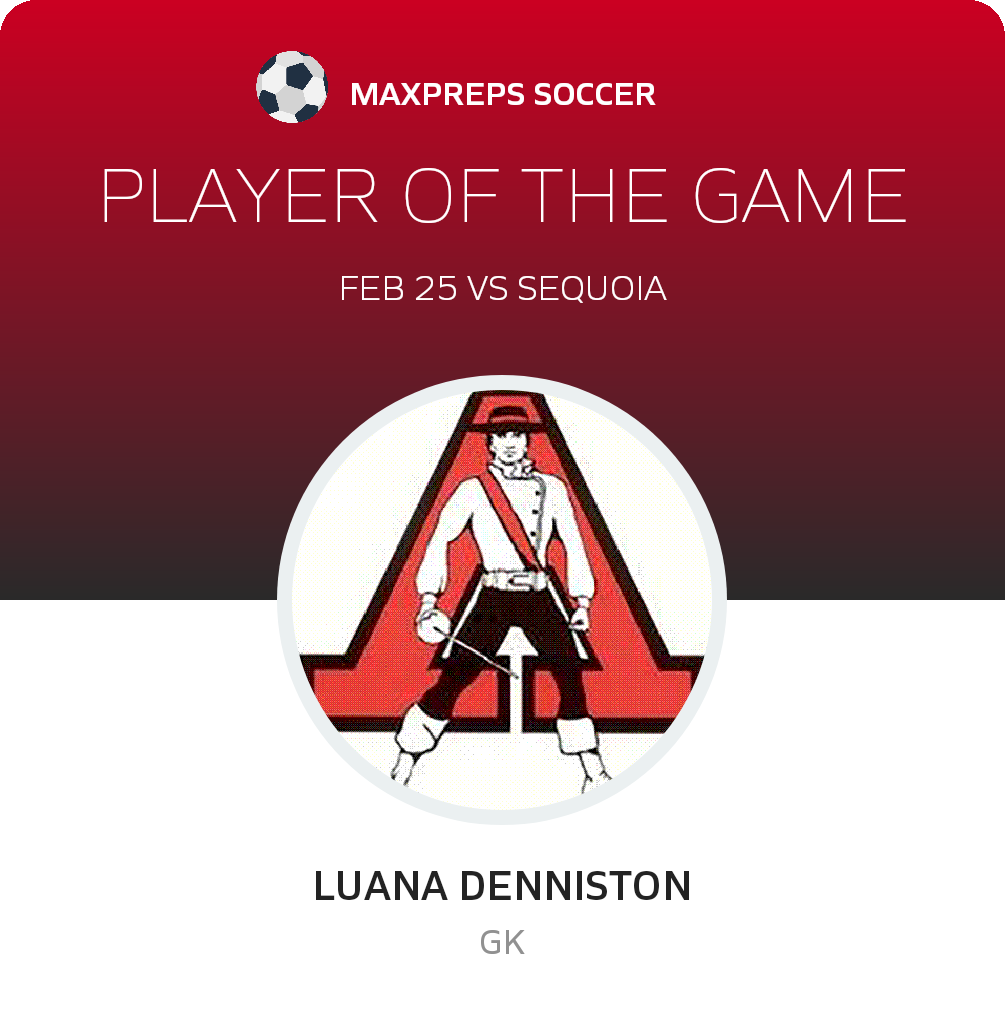 Congratulations to #00 Luana Denniston for being selected the Aragon Girls Soccer Player of the Match.