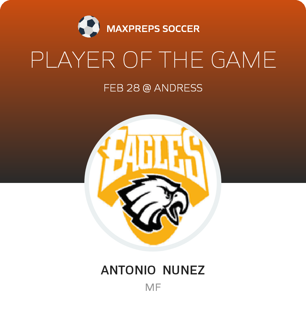 The Eagles now sport a 20-1 record. They play next when they travel to Jefferson for a 5A Region 1 District 1 match on Friday, March 3. Andress will encounter a Silver Foxes squad coming off a 2-1 league win over El Paso (El Paso, TX). The Silver Foxes record now stands at 10-10.
