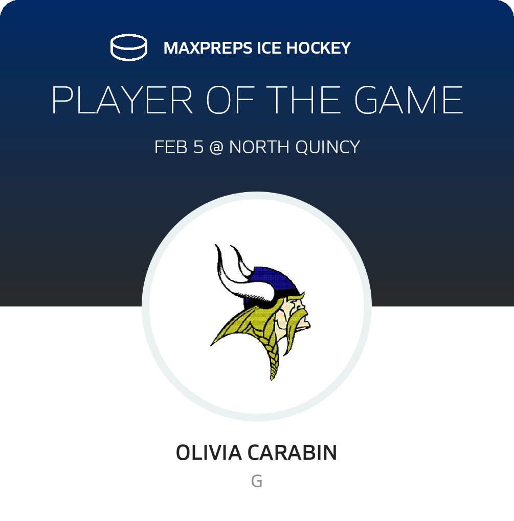 Congratulations to #1 Olivia Carabin for being selected the East Bridgewater Girls Ice Hockey Player of the Game.
