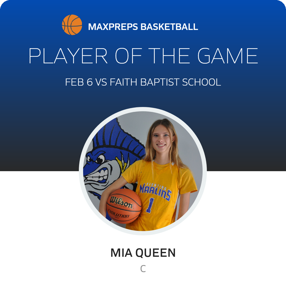 Congratulations to #1 Mia Queen for being selected the Seaside Christian Academy Girls Basketball Player of the Game.