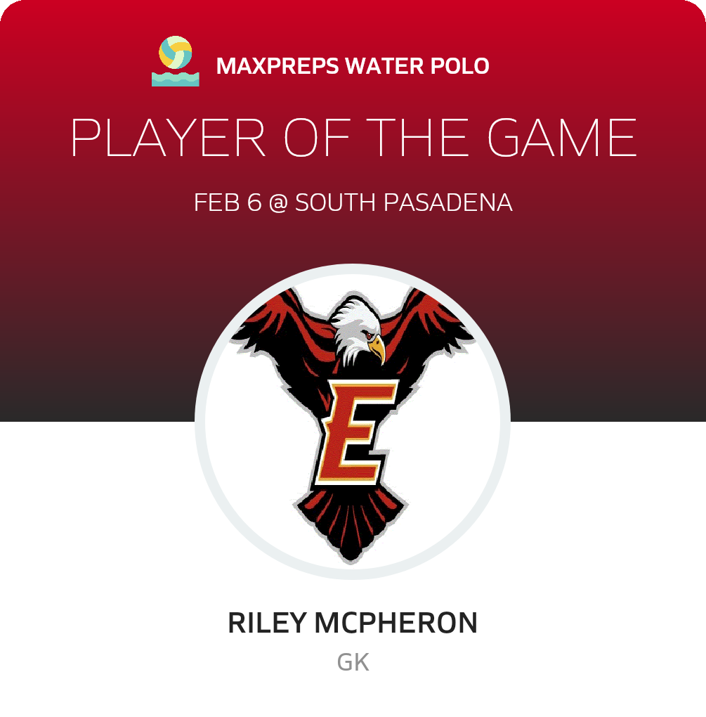 Congratulations to #1 Riley Mcpheron for being selected the Etiwanda Girls Water Polo Player of the Game.