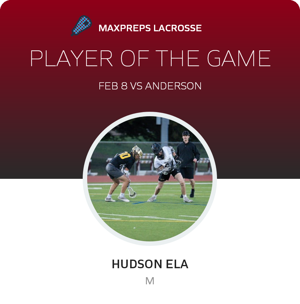 Congratulations to #67 Hudson Ela for being selected the Dripping Springs JV Lacrosse Player of the Game.