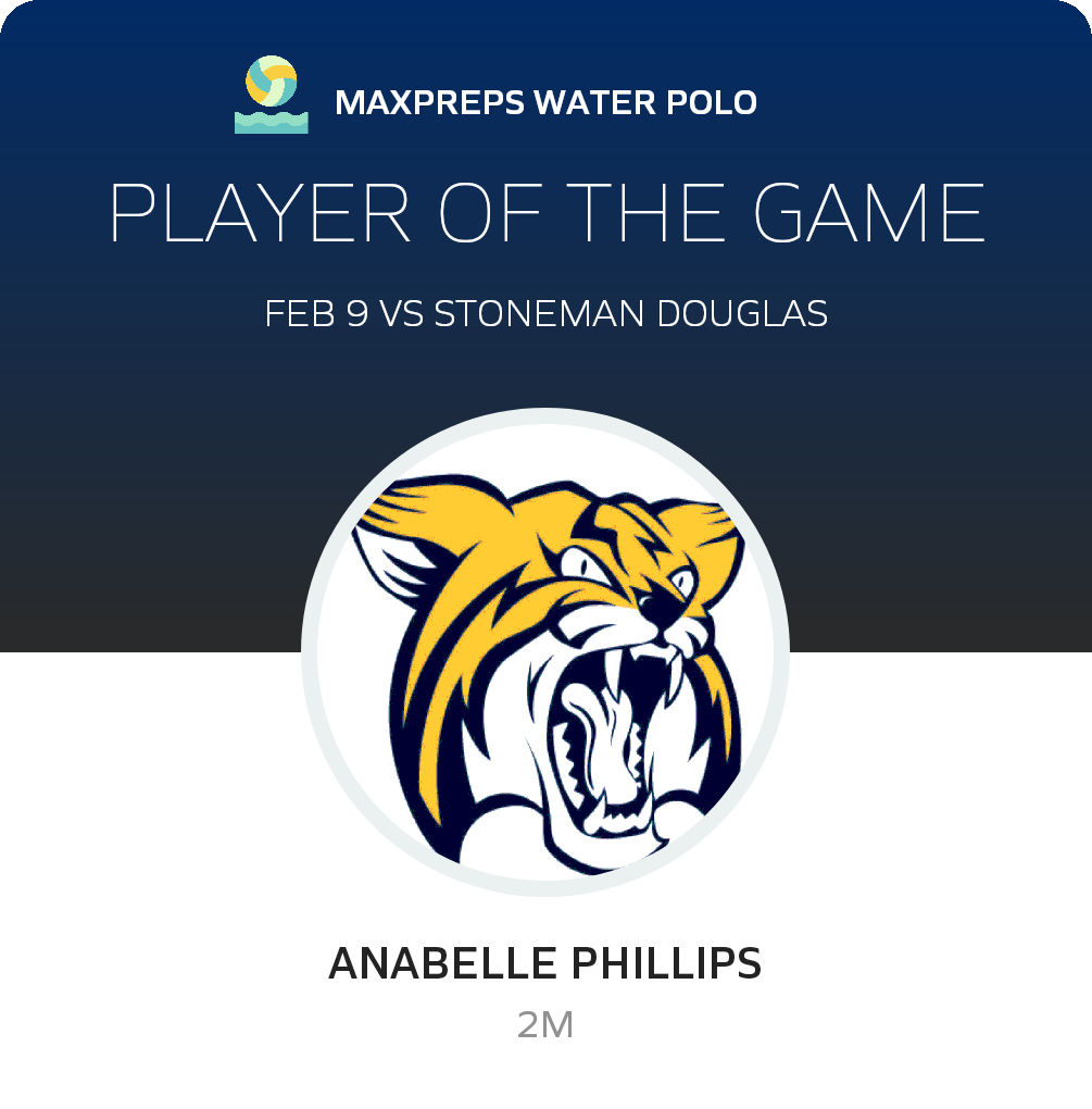 Congratulations to #14 Anabelle Phillips for being selected the Boca Raton Girls Water Polo Player of the Game.