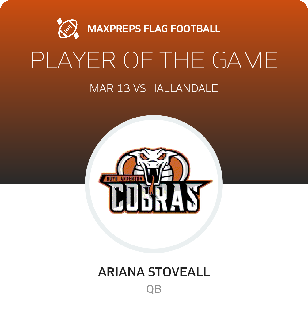 In Thursday's non-league game, the Boyd Anderson Cobras (Lauderdale Lakes, FL) flag football team triumphed over the visiting Hallandale Chargers (Hallandale, FL), by a tally of 36-0.