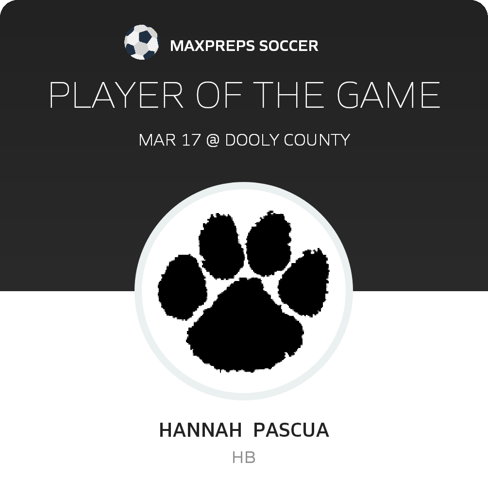 Congratulations to Hannah Pascua for being selected the Chattahoochee County Girls Soccer Player of the Match.